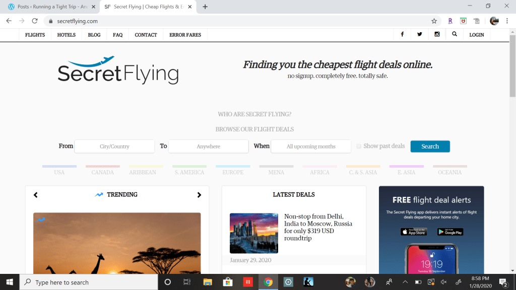 This is my holy grail. I have turned so many people onto Secret Flying that I feel like they should be paying me with how much traffic I must have given them! Secret Flying is a website, but it is also an app, and there is a Facebook page. Basically, they do the work of finding cheap flights for you.