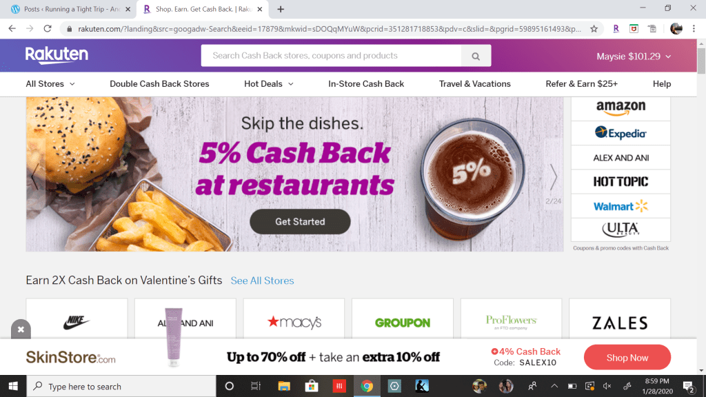 One thing I do is use Rakuten! It used to be called Ebates, but now it’s called Rakuten. I always thought this was a scammy/gimmicky thing, but I’ve saved so much money! Even if you’re only getting 5% cashback, you’re still getting 5% of your $500 flight back into your pocket. I also double check the site RetailMeNot to see if they’re offering cashback. Groupon, as well. Because you can stack the cashback! Make sure to double check that you’re using any sort of cashback credit or debit card when you book, too!